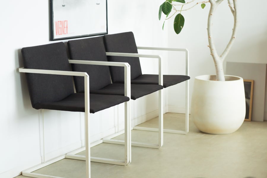 無機質なアイボリー塗装のスチールに対し、スレートグレーのファブリックシートとの素材のコントラストが、ダッチデザインの中で表現できるノーブルな質感を演出しています。浮遊するような軽やかさと、静かな安定感。相反する要素を美しく両立させた、構造美が際立つプロダクトです。