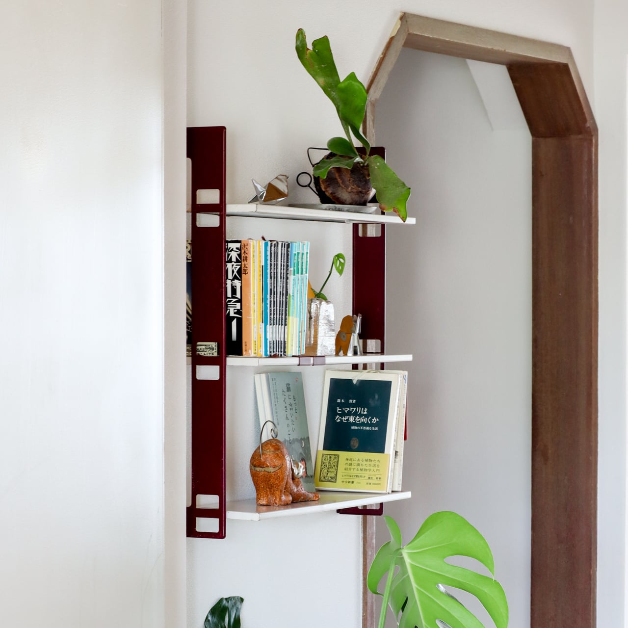 各所につくられたスクエアの窓が視覚的アクセントをもたらしつつ、フレームを含めて平面的なつくりのため、コレクションラックにして引き立て役としても活躍してくれそうです。