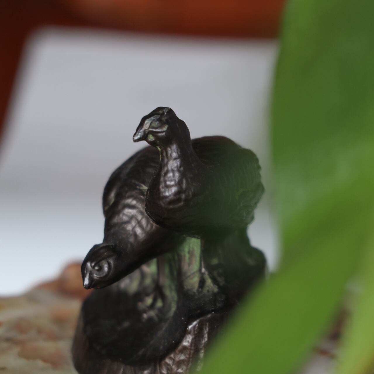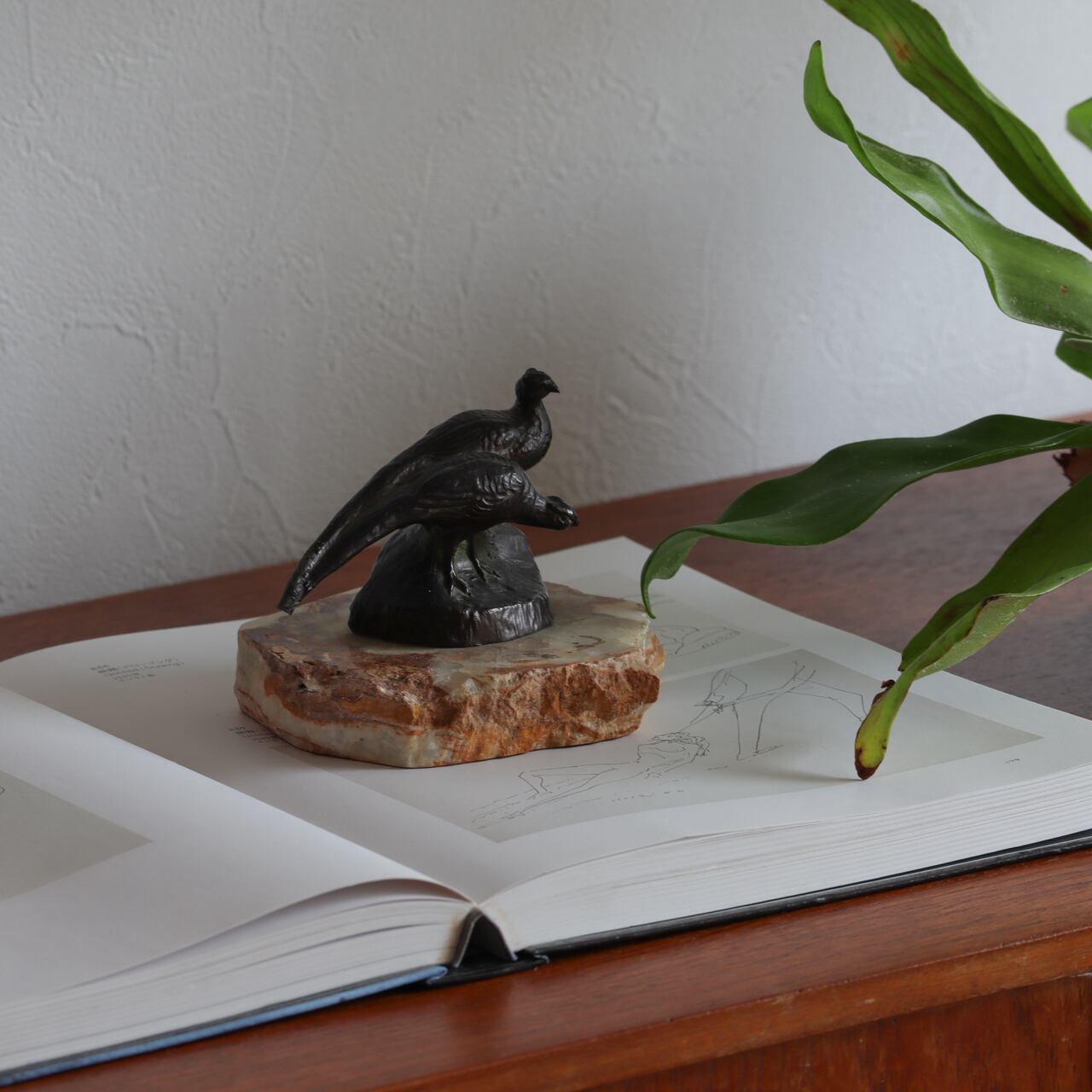 鋳造にて作り出された鳥のオブジェに、