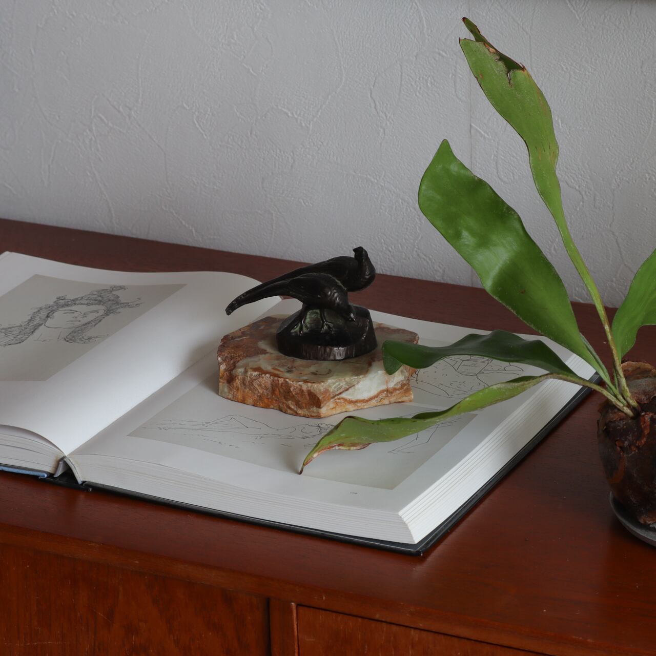 鳥のやさしさと、素材の力強さの対比も