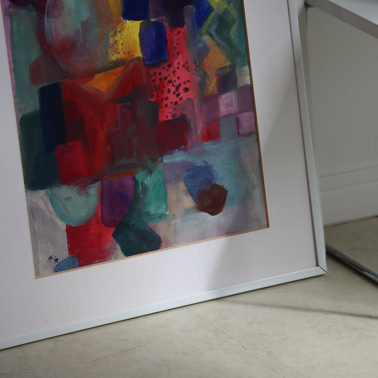 オランダの蚤の市で入手した、パウルクレーを彷彿とさせる抽象的なドロイングアートです。