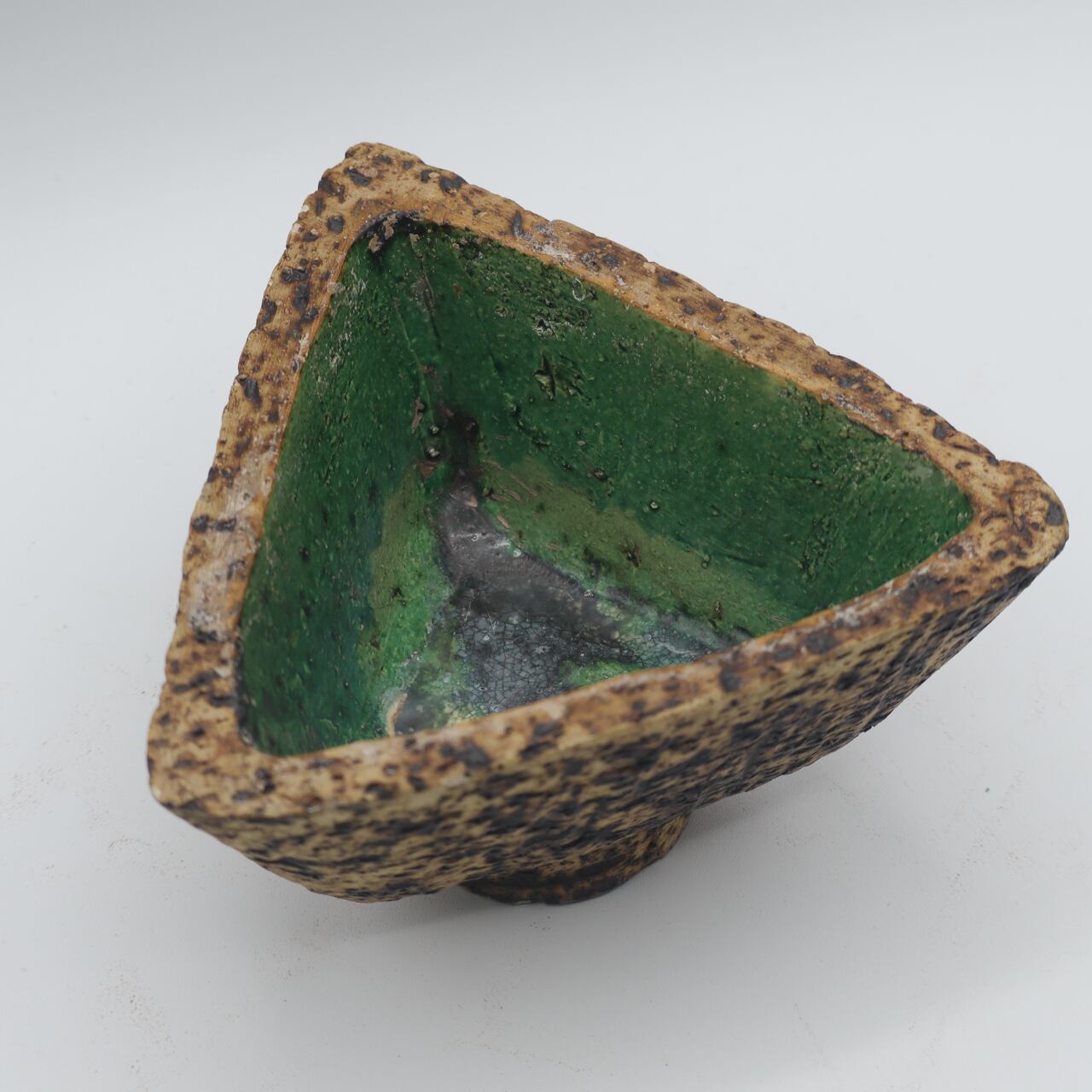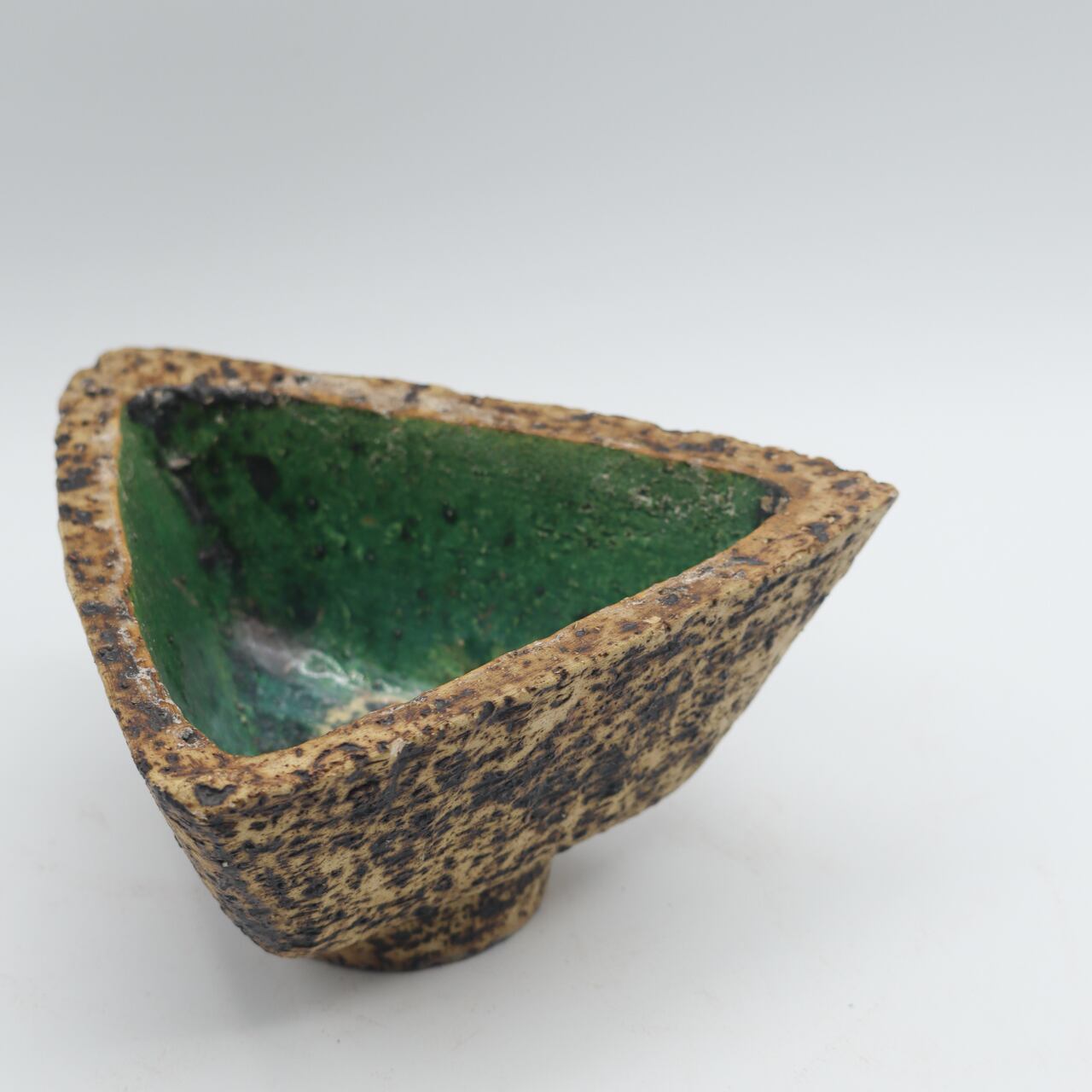 三角のシャープな形状と深めの鉢の作りが、力強い佇まいを醸しています。