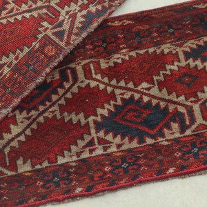 テラコッタとネイビーの配色をベースにしたキリムラグ。