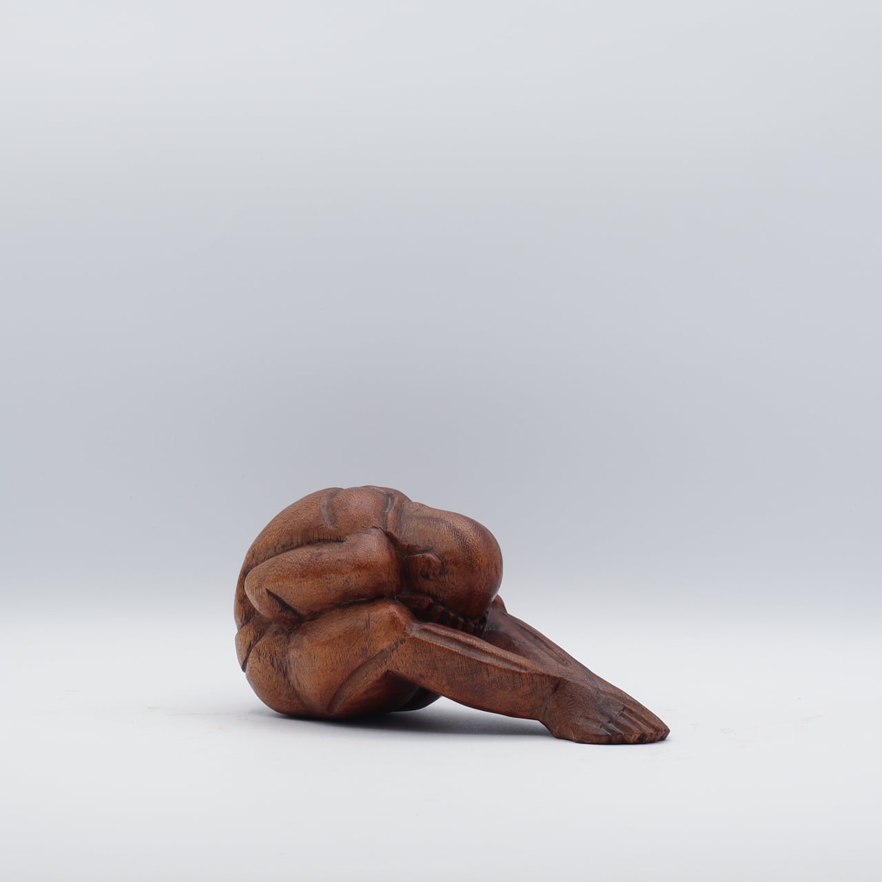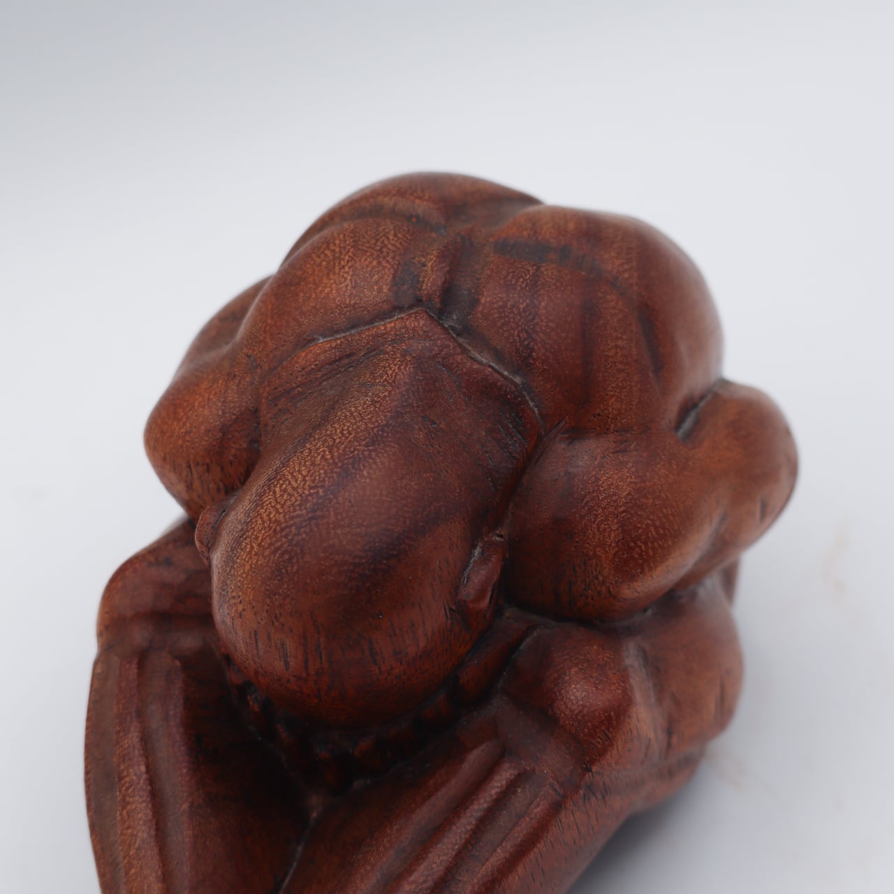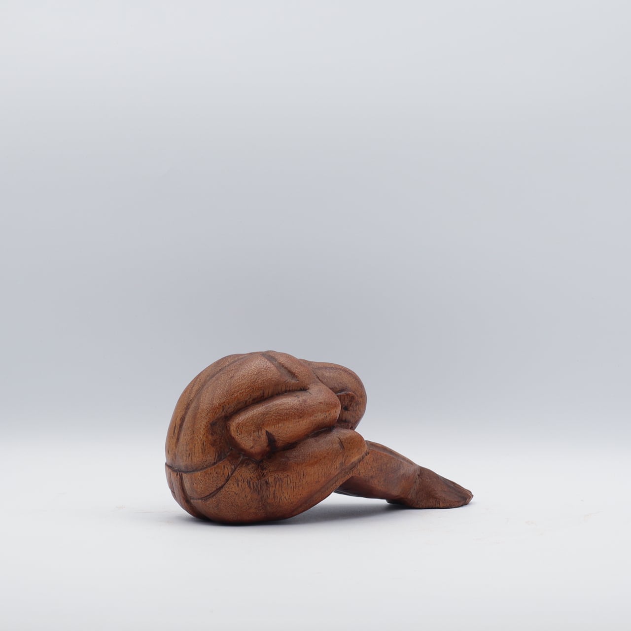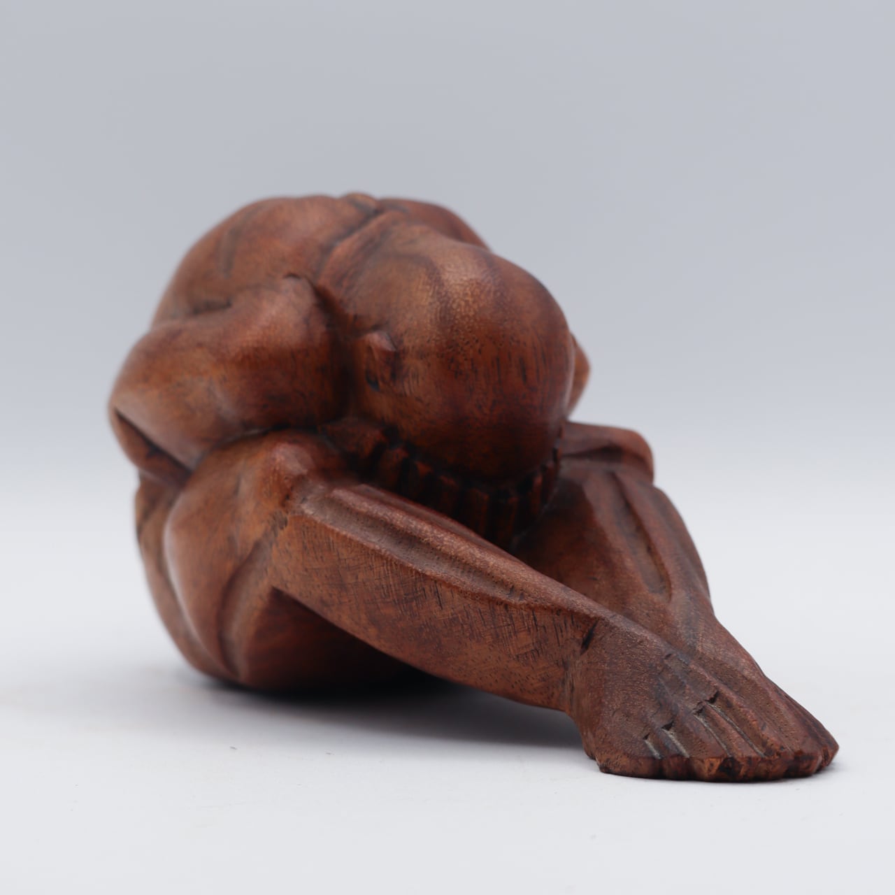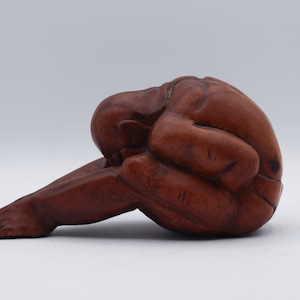 泣いている仏陀の木製の彫刻像。