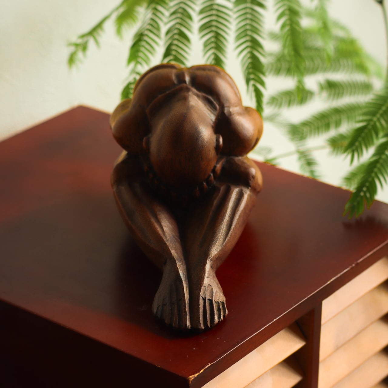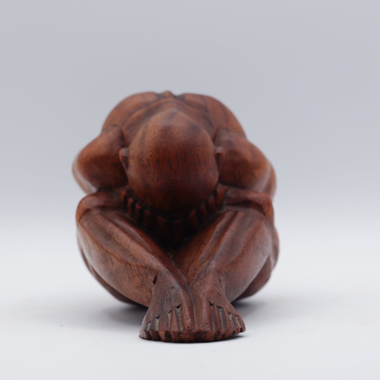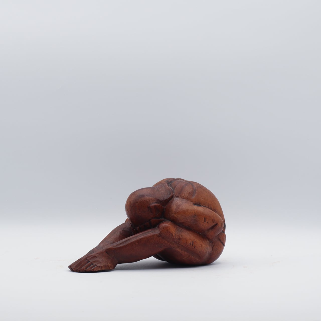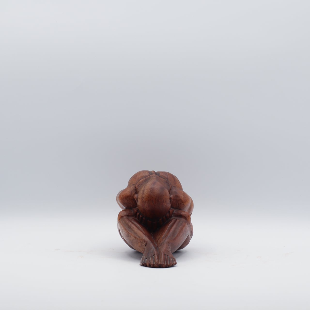 泣いている仏陀の木製の彫刻像。