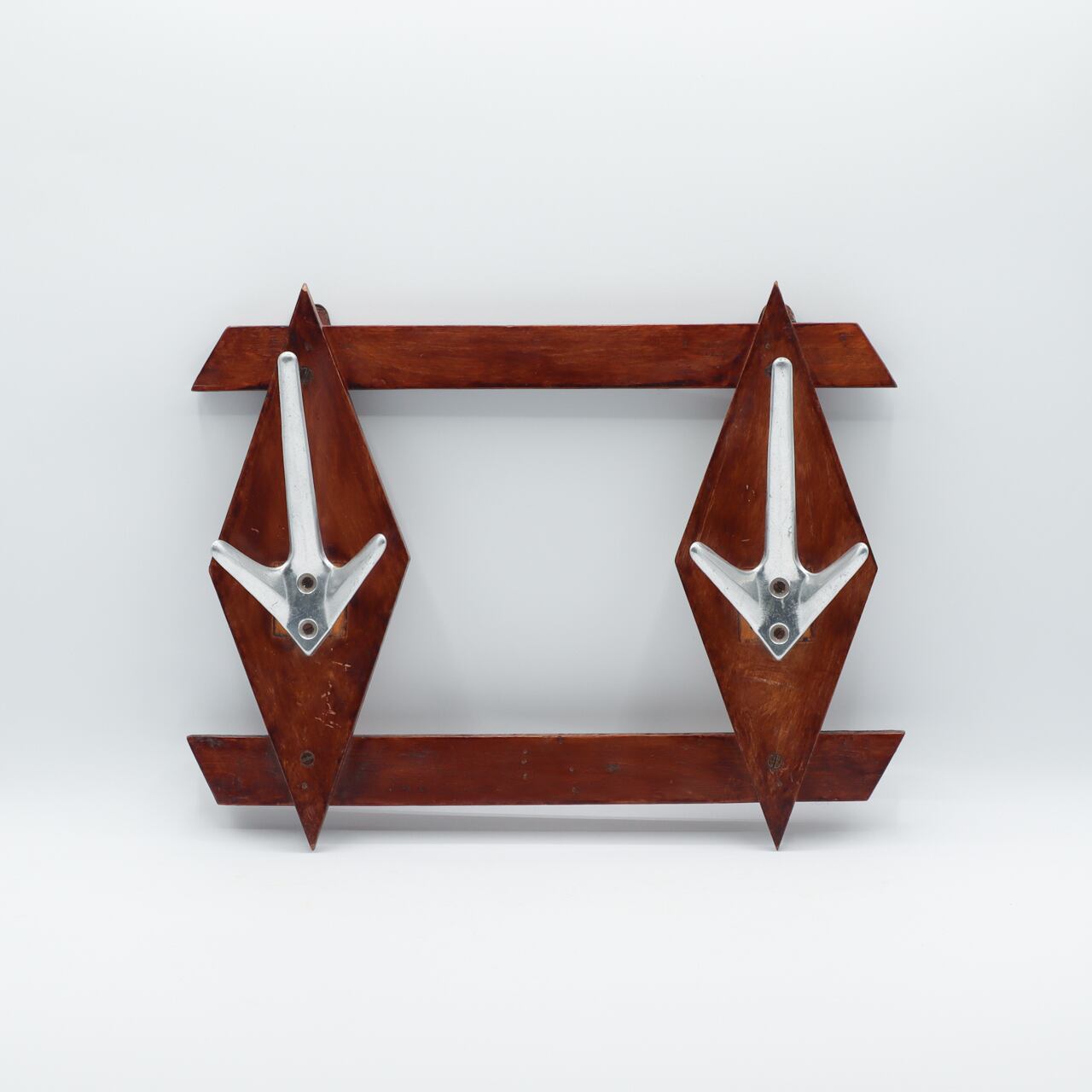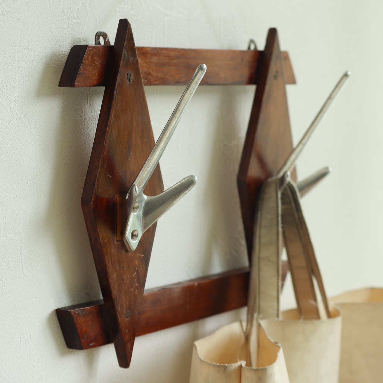 アールデコの様式美を感じさせる二連の木製コートハンガー。