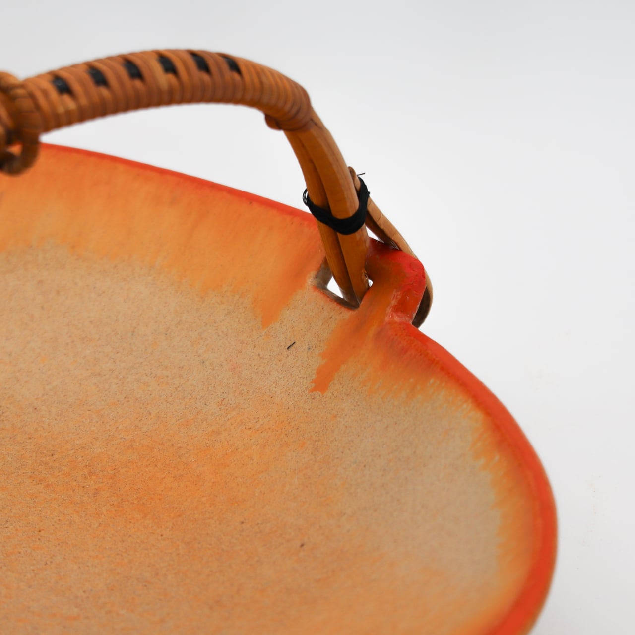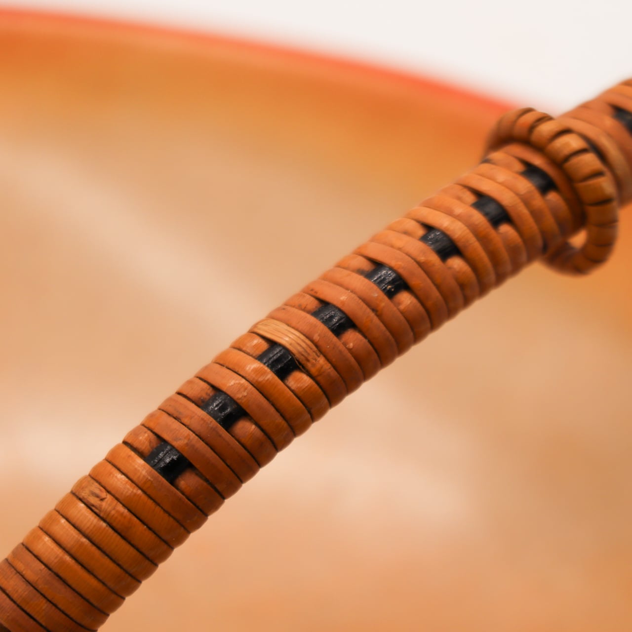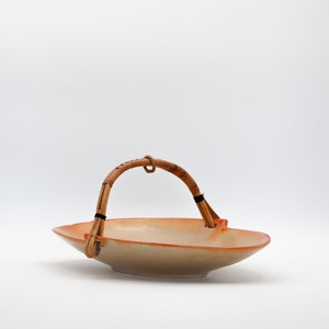 籐のハンドルの柔らかさが組み合わされた折衷の美を感じさせる作品です。