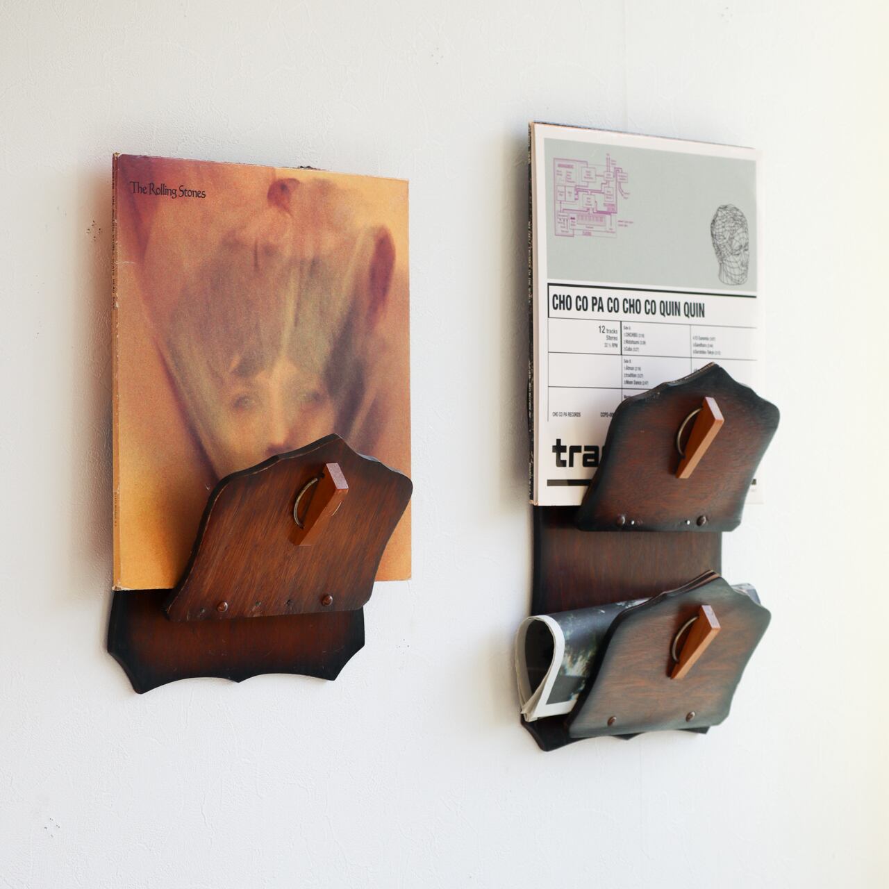 本来は新聞紙や郵便物を挟むものでしたが、レコードや本でもお使いいただくことができます。帽子やサコッシュなんかも収まるかと思います。