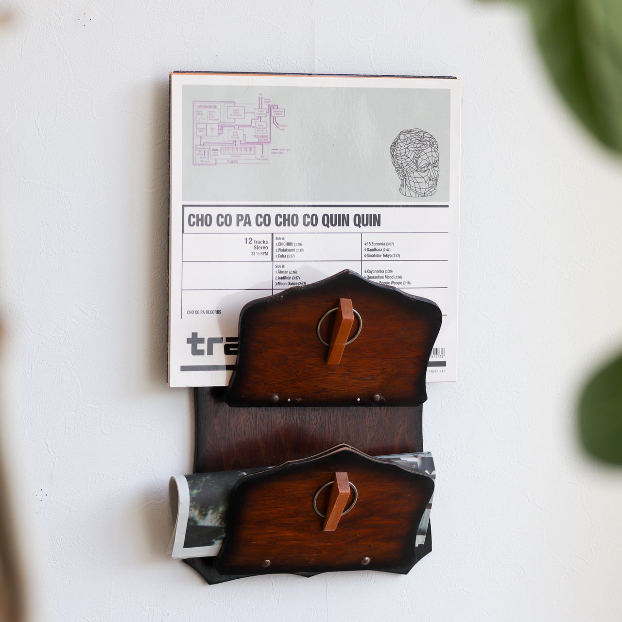 本来は新聞紙や郵便物を挟むものでしたが、レコードや本でもお使いいただくことができます。帽子やサコッシュなんかも収まるかと思います。