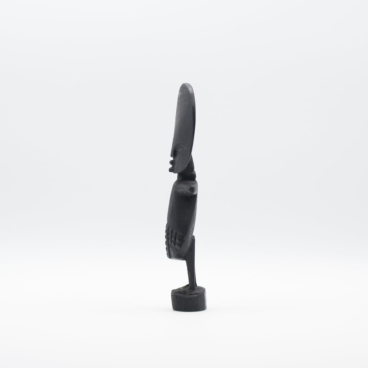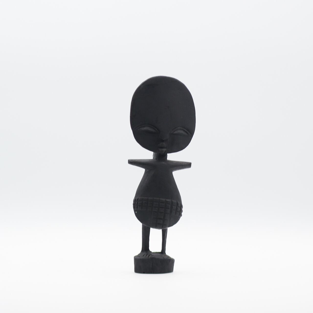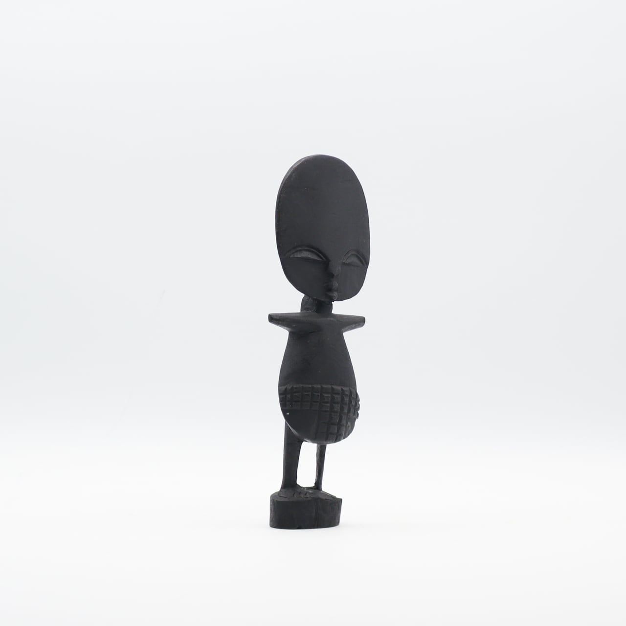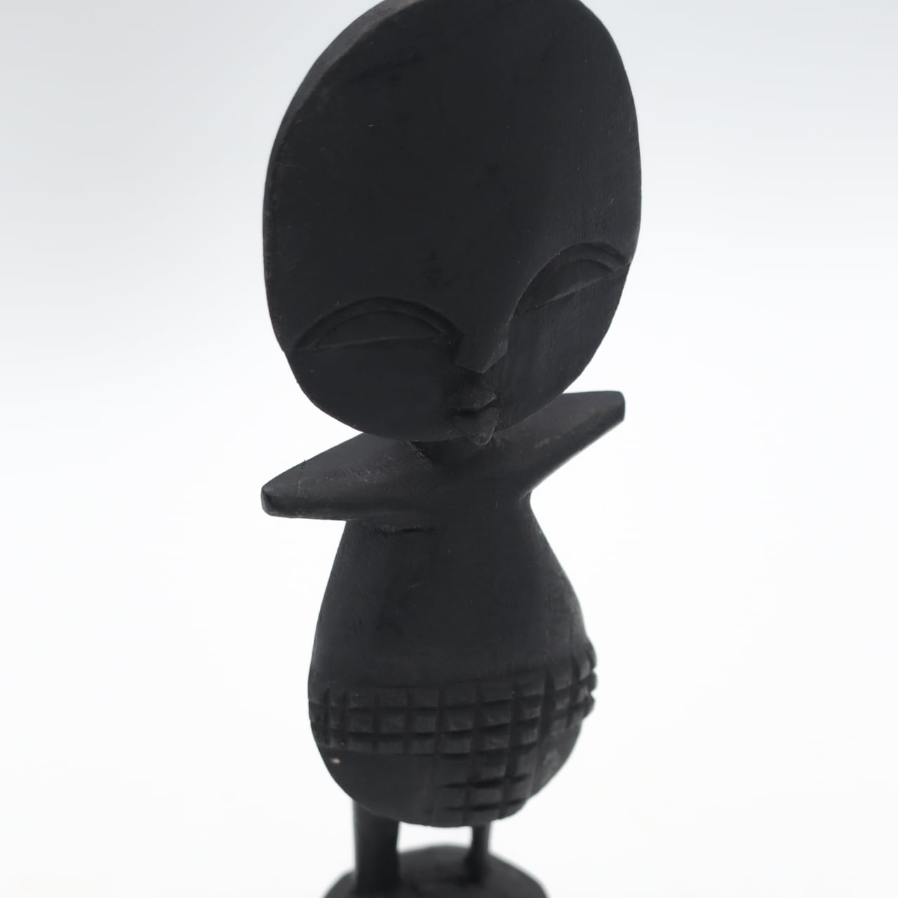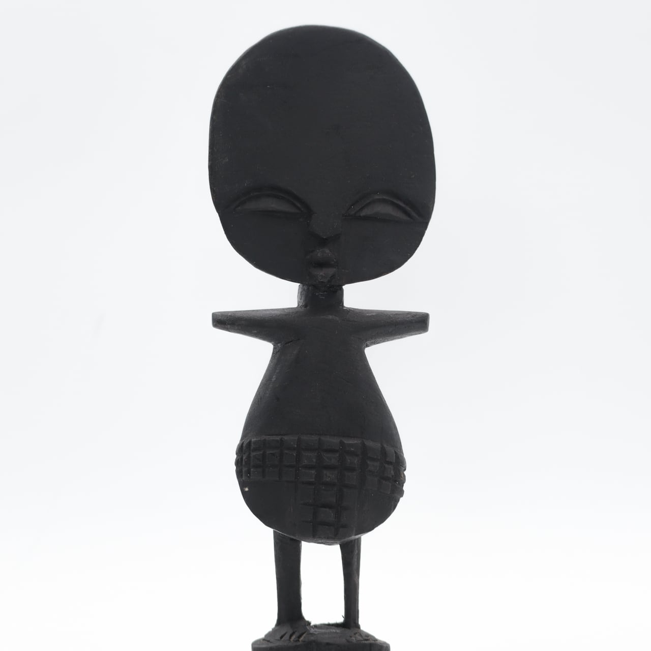 西ガーナのアシャンティ族の豊穣の儀式の際に使う人形で、大きな円盤の頭部に、様式化されたジオメトリック紋様が施されているのが特徴です。