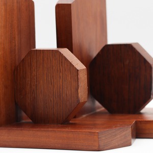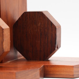 八角形のモチーフと屋根型の土台の縁の意匠の安定感と、なめらかで状態の良い木目でミニマルながらもかなり上質な印象を受けます。