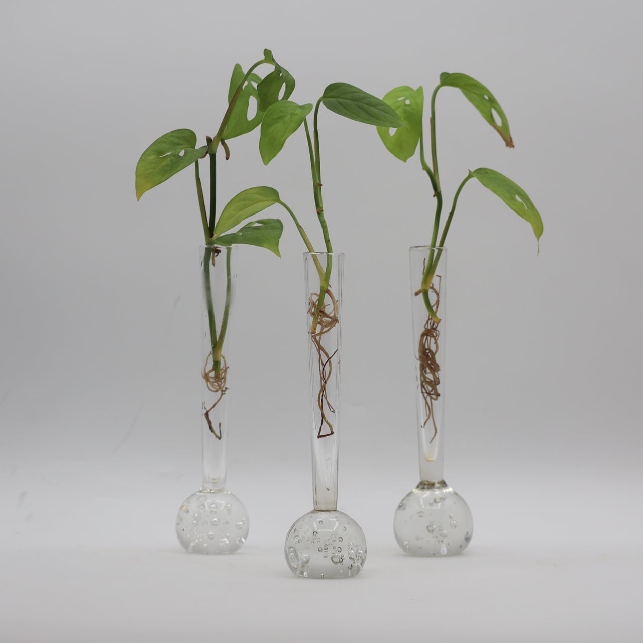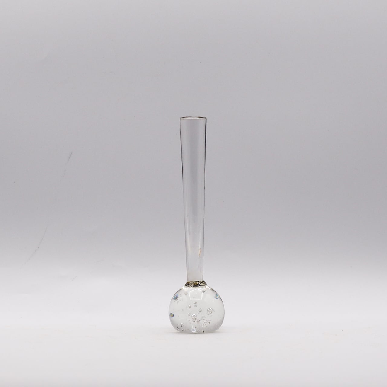 ガラスの中に閉じ込められた気泡が魅力的な一輪挿し。もともとは蘭を飾るために作られたものだそう。