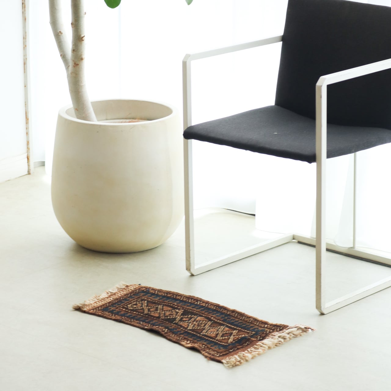 ところどころ手仕事の痕跡が感じられる、例えばウール織からキリムエンドに仕上げられている左右のしつらえもまた、胸が鳴るポイントです。少し弓なりの形状になっており、厚みはそこそこ、毛足は短めです。