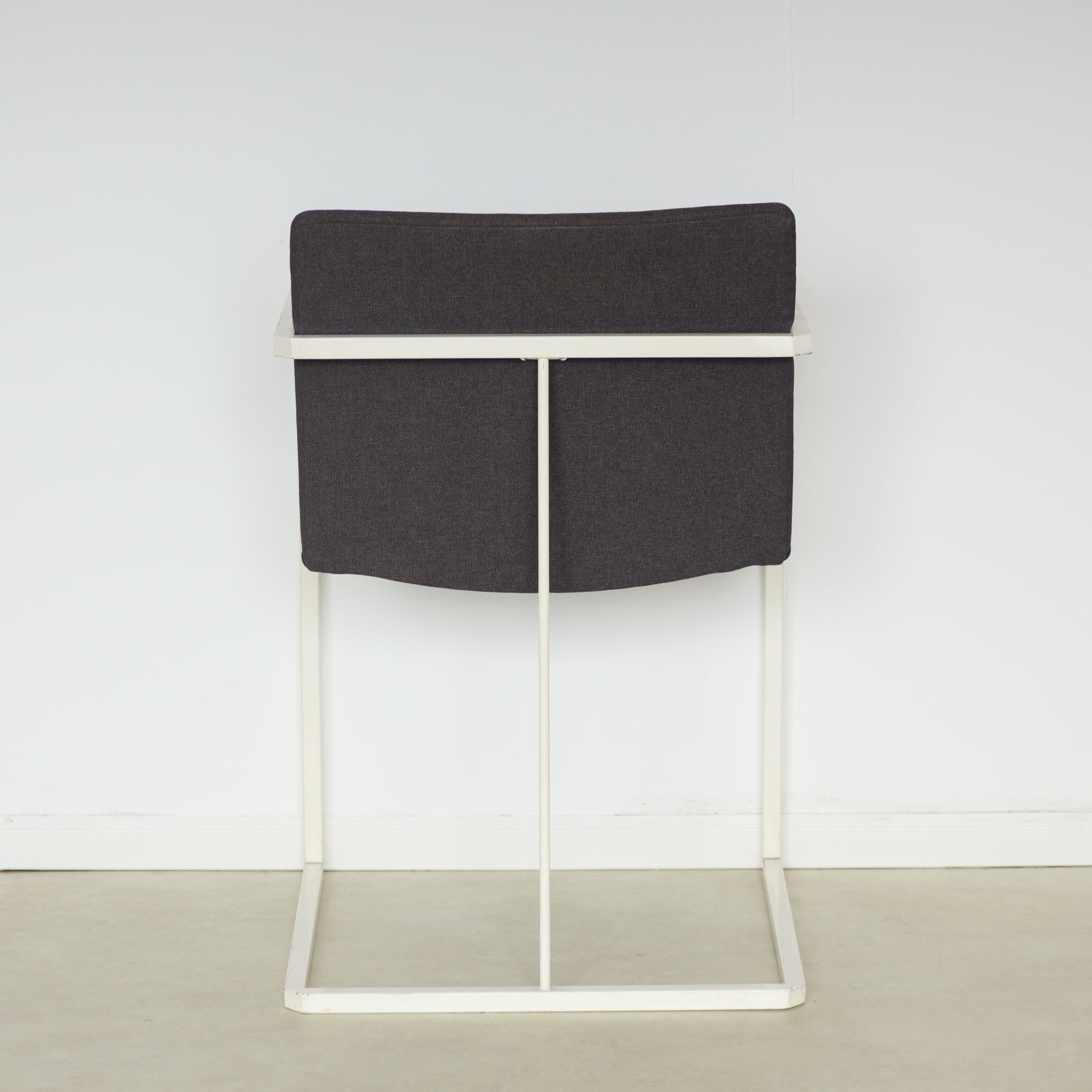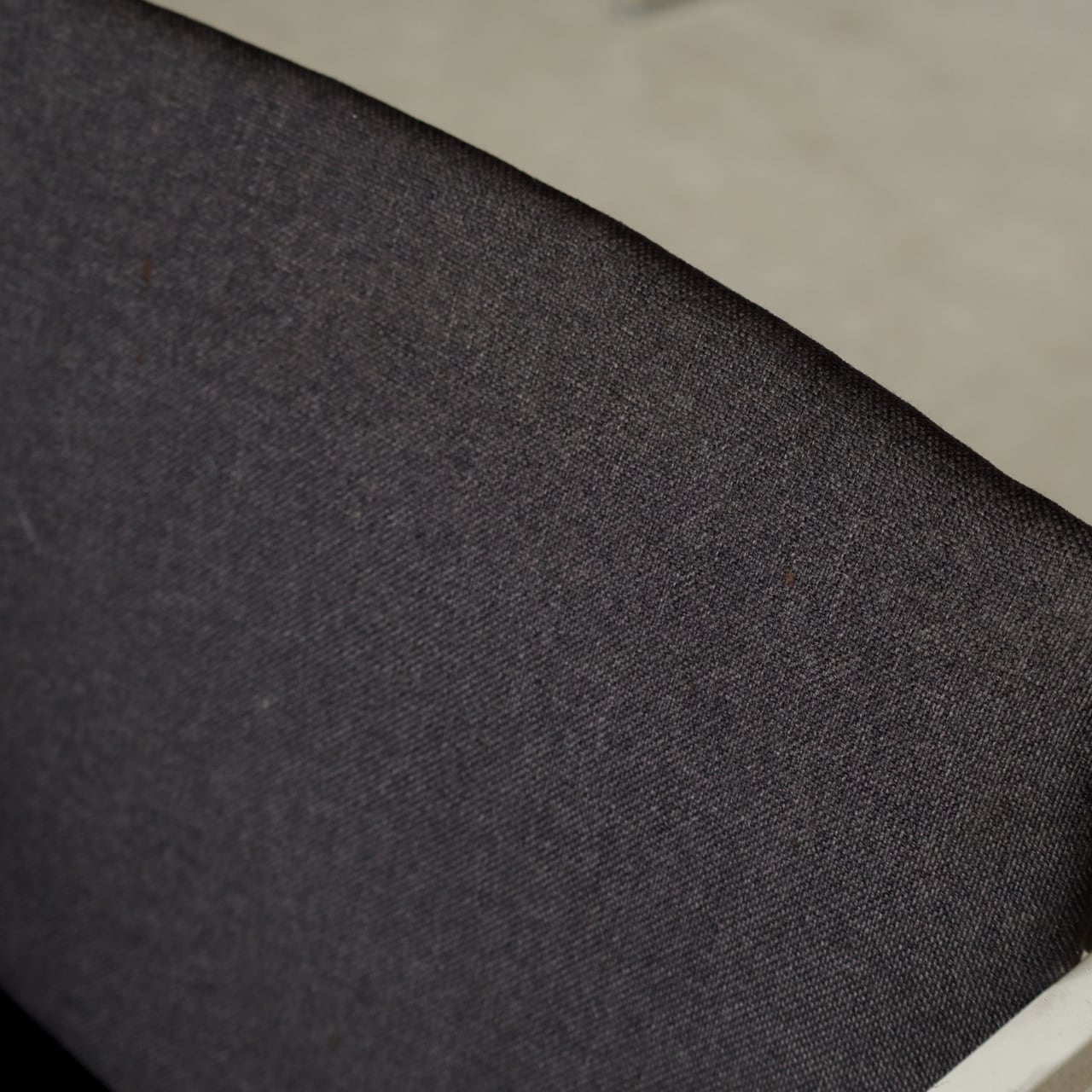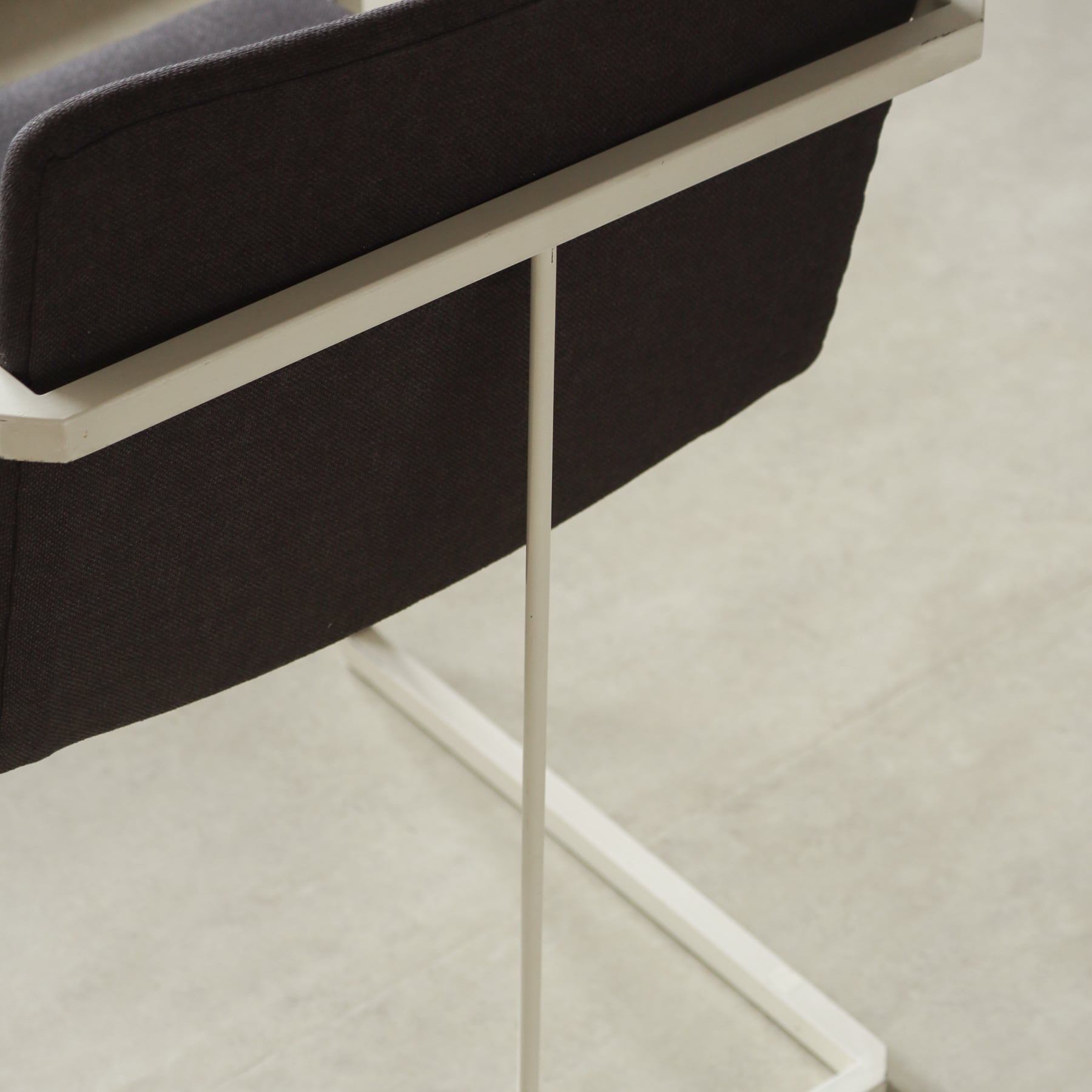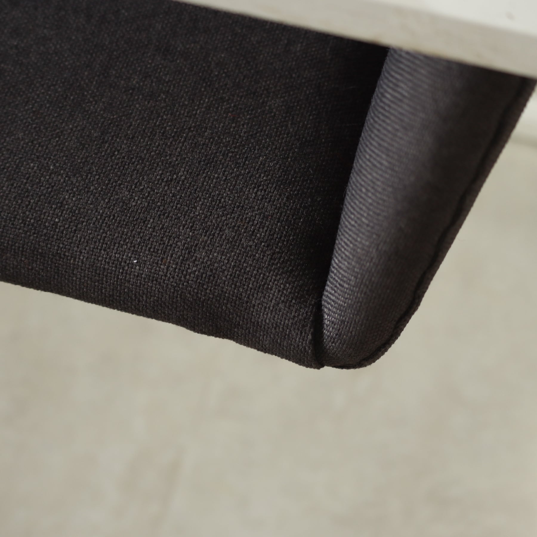 そんな無機質になりがちなスチールに対し、座面と背もたれには、深みのあるスレートグレーのファブリックが合わせられています。細かな織りが柔らかい陰影を出してくれているので、質感にコントラストが出ているところが巧妙です。